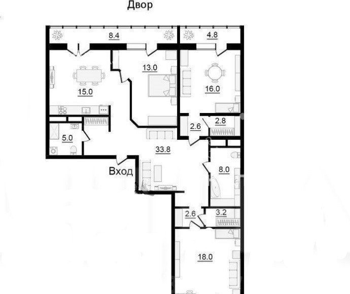 Указанная площадь квартиры не учитывает лоджии и балкон площадью 16,7 кв. м, с которыми общая площадь квартиры около 140 кв. м.
