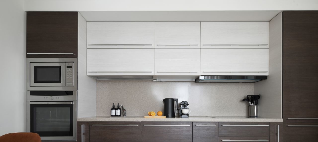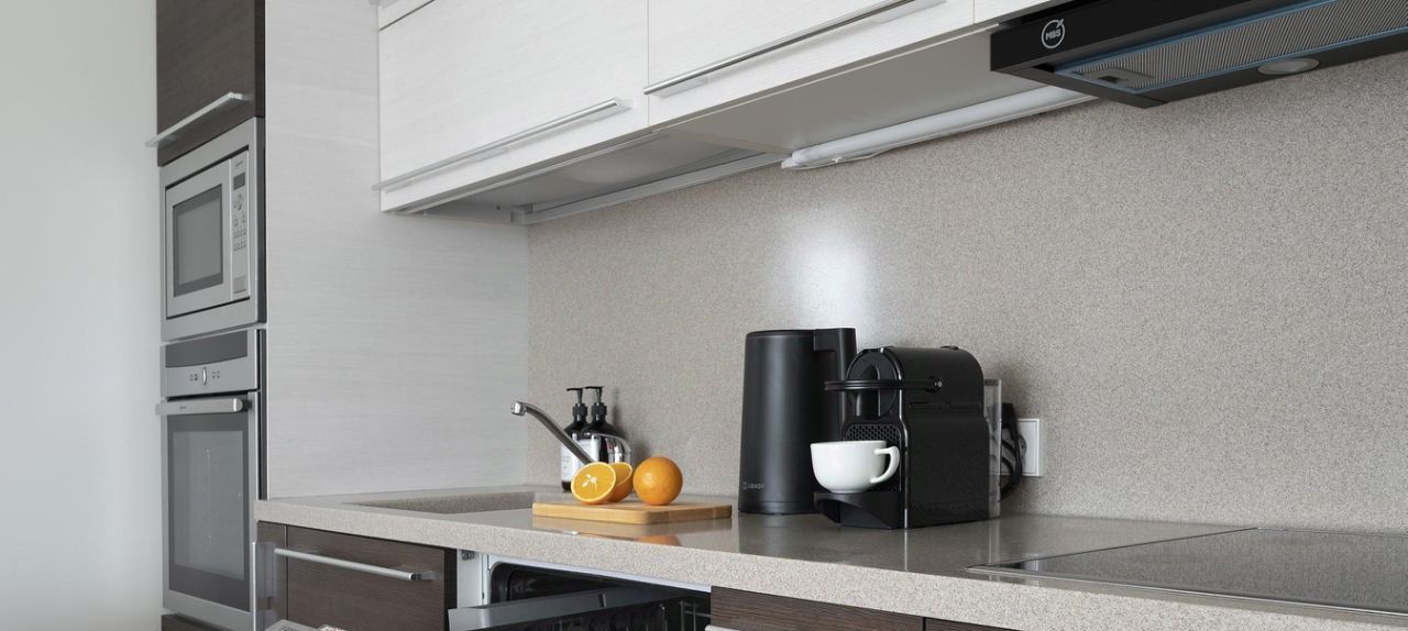- Видовая кухня-гостиная с зонами приготовления пищи, столовой, зоной чая/кофе, а также зоной отдыха