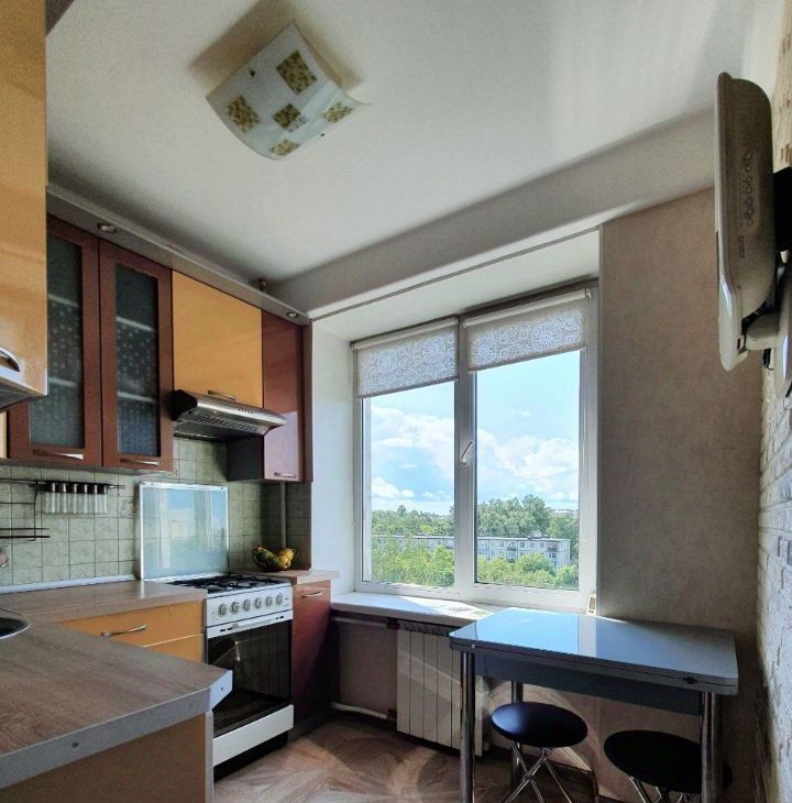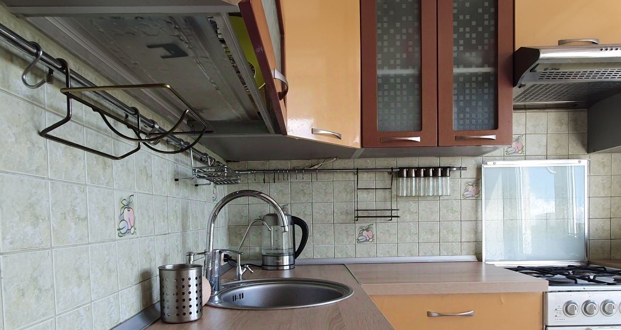 Кухня просторная, оснащена необходимой бытовой техникой. Из окон открывается приятный вид на городскую зелень. В квартире есть балкон, где можно наслаждаться свежим воздухом.