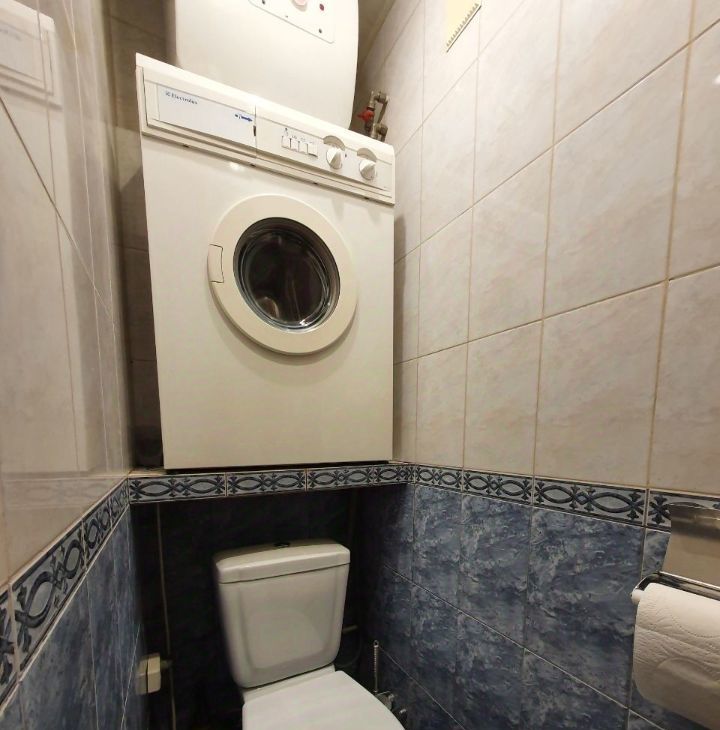 Ванная комната, оборудована современной сантехникой и стиральной машиной. Раздельный санузел добавляет удобства в повседневной жизни.