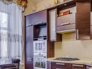 Квартира в хорошем состоянии: ламинат, стеклопакеты, санузел в кафеле. три изолированные комнаты. Есть вся необходимая мебель и бытовая техника. Сауна. 2 санузла. Двухсторонняя. Окна на пешеходную улицу и во двор на Андреевский собор.