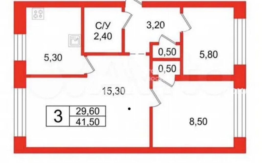 3-комнатная квартира: Санкт-Петербург, улица Партизана Германа, 35к1 (58 м²)