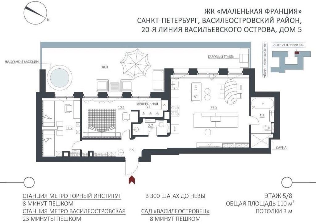 В продаже — редкий формат для центра Петербурга: квартира с большой приватной террасой 38,6 м² и собственной сауной. Идеальное решение для тех, кто ценит приватность, стиль и уровень.
