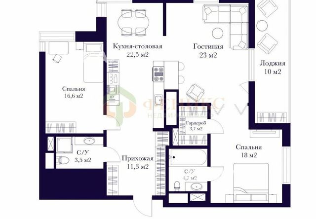 Бизнес-класс | 11 этаж из 22 | 2018 г.п.