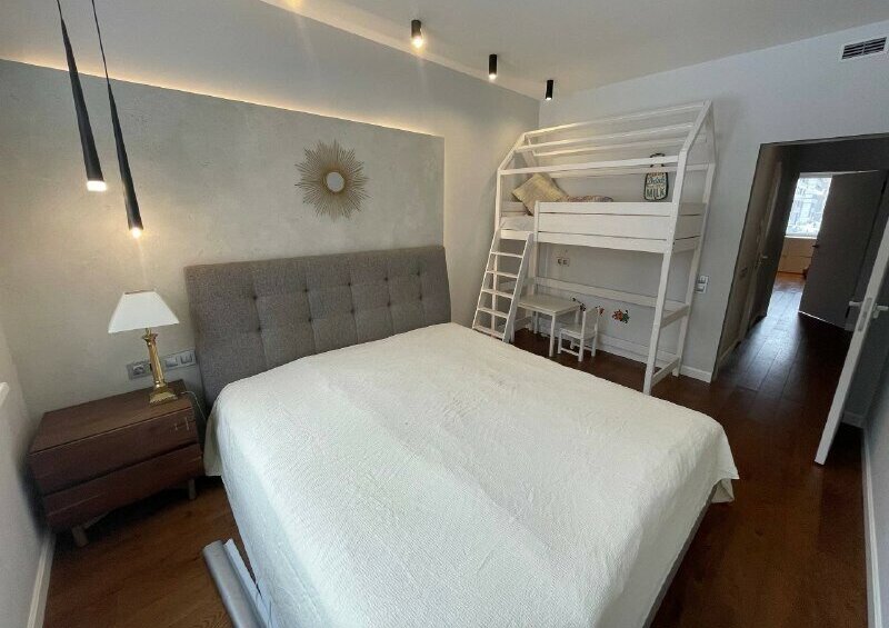 · Ремонт и мебель: Дизайнерский ремонт в скандинавском стиле: светлые тона, качественные натуральные материалы. Встроенная кухня с техникой, сантехника премиум-класса. Квартира полностью меблирована: удобные кровати, просторные шкафы, гардеробная система, обеденная группа, мягкая мебель.