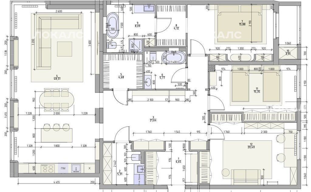 3-комнатная квартира: Санкт-Петербург, Барочная улица, 6 (160 м²)