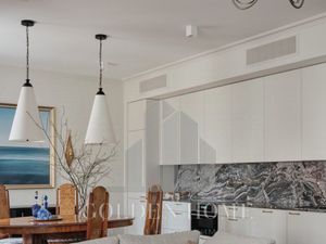 В квартире сделан качественный ремонт "для себя". Установлена дополнительная очистка воды, приточная вентиляция (дополнительно установлены кондиционеры), в зоне плитки теплые полы. По планировке квартира состоит из: Просторной кухни-гостиная 40 кв.м., 3 изолированные комнаты по 20 кв.м., 2 санузла, 3 гардеробные, постирочная и кладовая комната. Высота потолков 3.1 метра.