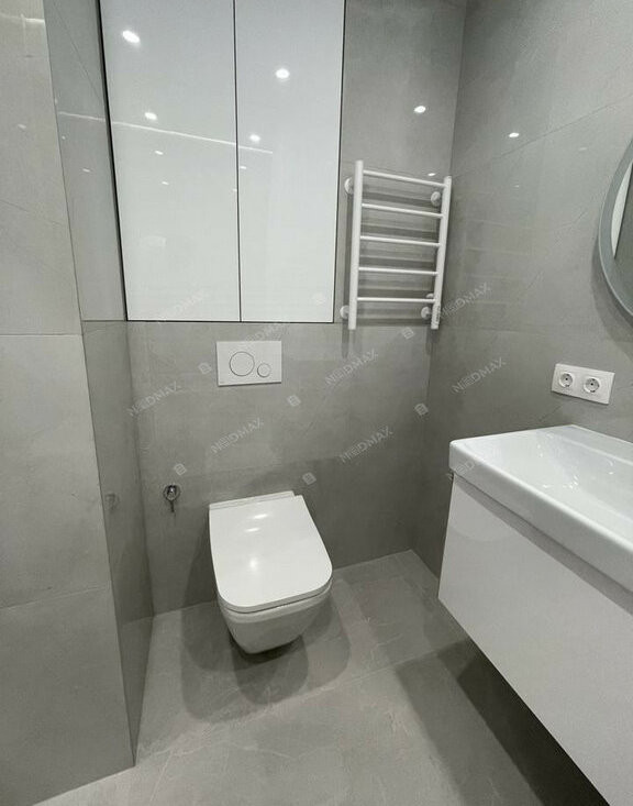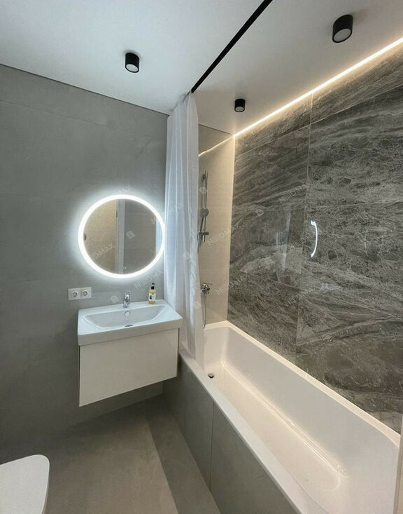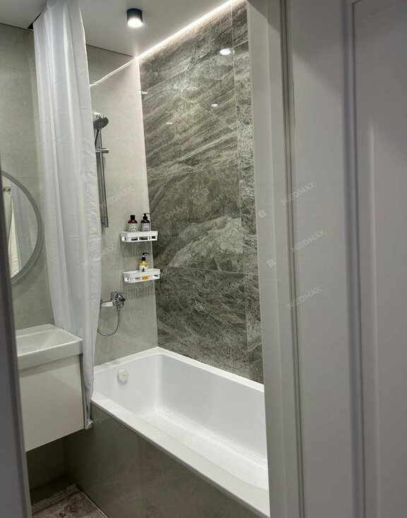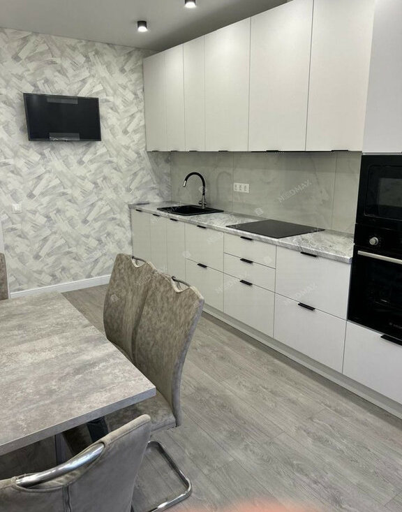 • Современная техника: в квартире есть все необходимое для комфортной жизни — стиральная и посудомоечная машины, духовой шкаф, варочная панель, холодильник и телевизор.