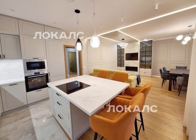 Объединенная кухня-гостиная 38 м2 с большим кухонным гарнитуром, с двумя встроенными холодильниками, посудомоечной машиной, духовым шкафом и микроволновкой. Отдельный кухонный остров. Удобная спальня (14,5 м2) с вместительной гардеробной (5 м2) с различными зонами хранения. Большая детская в 23 м2. Два просторных санузла с очень большой ванной и душевой. Два балкона с фасадным остеклением, выходящие на разные стороны квартиры.