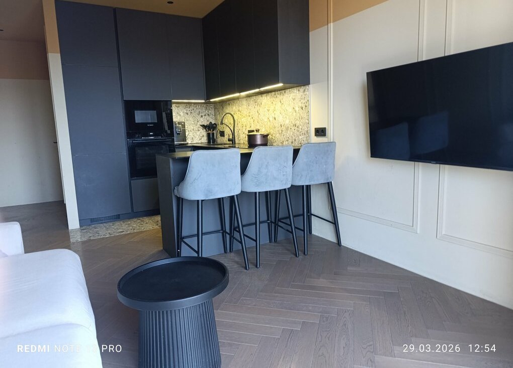 В квартире вся необходимая бытовая техника для комфортного проживания: холодильник, стиральная машина, микроволновая печь и посудомоечная машина, телевизор. Двуспальная кровать, 2 дивана, гардеробная, постирочная. Из окон открывается потрясающий вид на город и 2 башни.