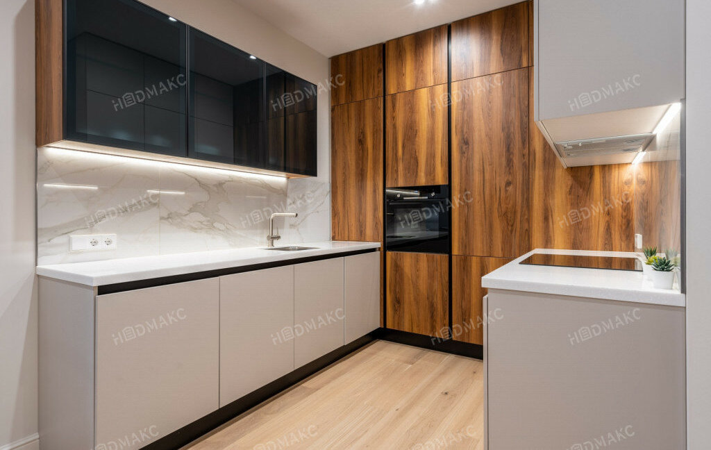 -просторная оборудованная кухня, совмещеннаяс гостиной зоной,
