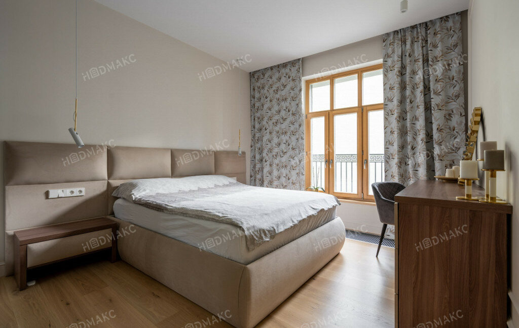 Высокие потолки. Панорамные окна с французским балконом.