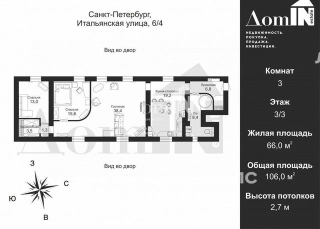 3-комнатная квартира: Санкт-Петербург, Итальянская улица, 6/4 (106 м²)