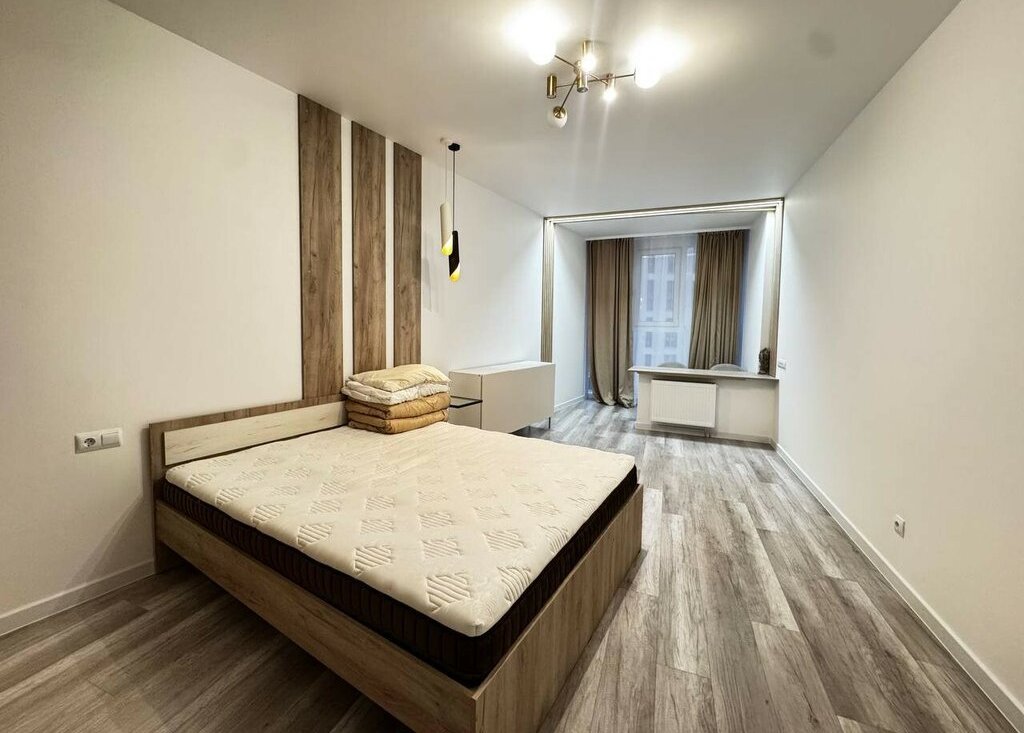 Пространство дышит свободой: высокие потолки создают ощущение простора, а большие окна наполняют комнаты естественным светом. Утром лучи солнца рисуют на полу тёплые узоры, а вечером сквозь стёкла мерцают огни города, превращая вид из окна в живой, меняющийся пейзаж.