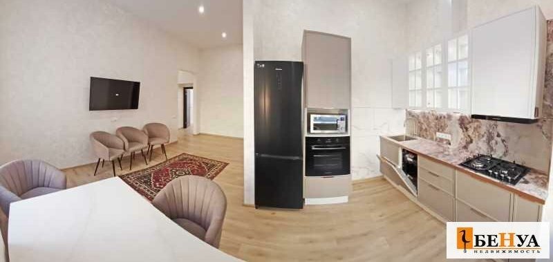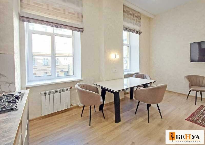 В квартире сделан современный ремонт. Высокие потолки — 3,7 метра. Просторная кухня оборудована необходимой мебелью и техникой: холодильник, посудомоечная машина и стиральная машина, СВЧ печь, духовой шкаф. В гостиной размещена обеденная группа, установлен современный телевизор. Предлагаем гибкий подход к меблировке спальных комнат. Арендатор может обустроить их по своему усмотрению, создав личное пространство, полностью отвечающее его предпочтениям.Ванная комната оснащена душевой кабиной. Окна квартиры выходят как на тихий двор, так и на оживленную улицу, что позволяет выбрать нужное настроение в зависимости от времени суток.
