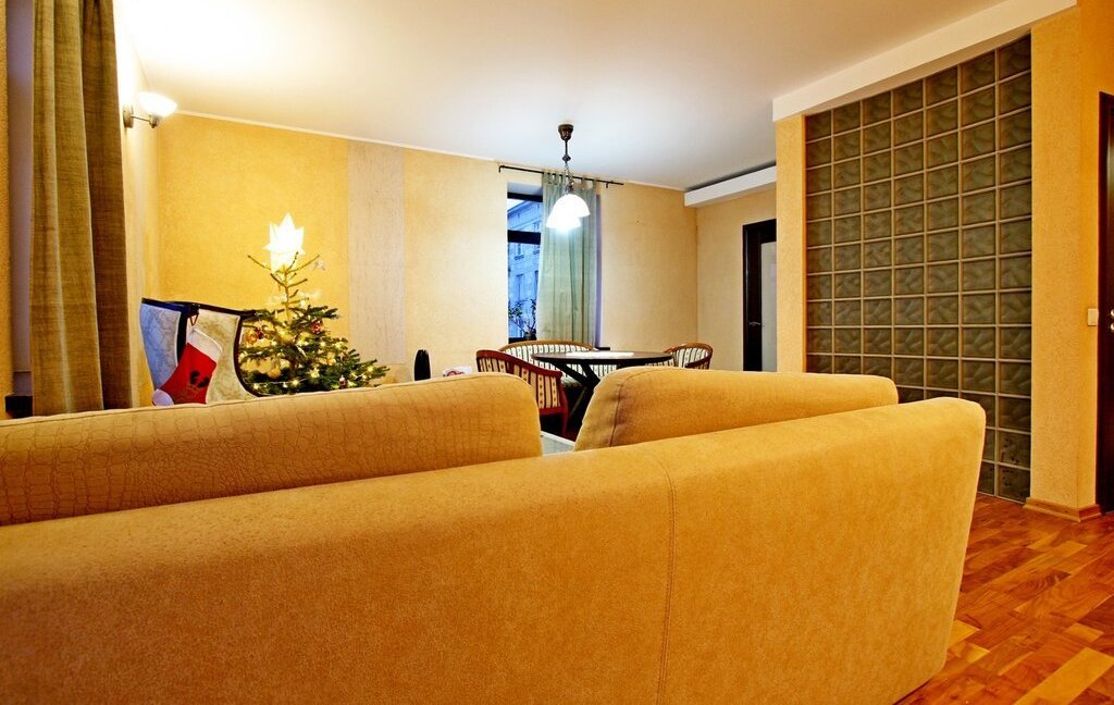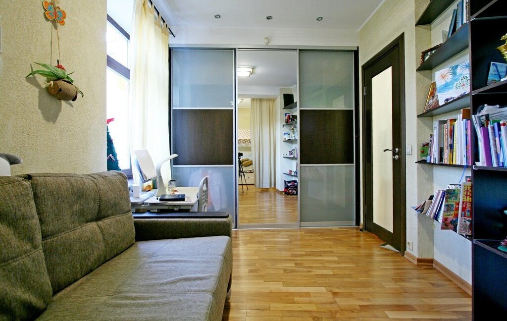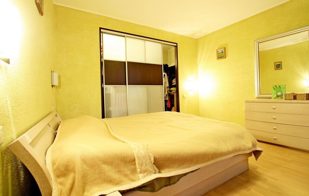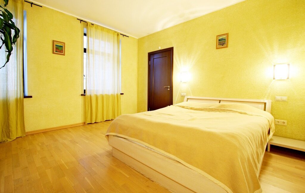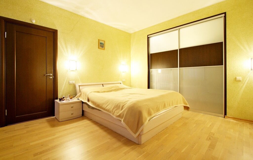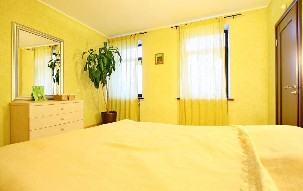 В квартире есть две спальных комнаты, одна с двуспальной кроватью и гардеробной выходит окнами в сторону Диво острова, другая - в тихий зеленый двор.