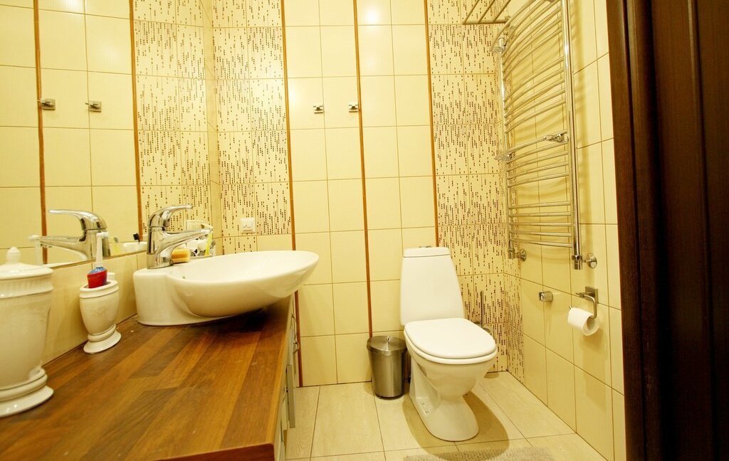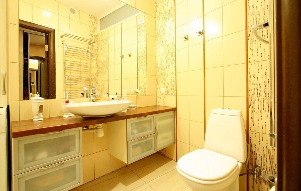 Настоящей изюминкой квартиры является отдельная большая ванная комната с ванной и туалетом, а также еще одна ванная комната с туалетом и раковиной. В прихожей - очень вместительный и удобный шкаф-купе.