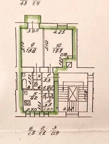 Просторная сталинка 62,9 м² с потолками 3,15 м у метро Автово