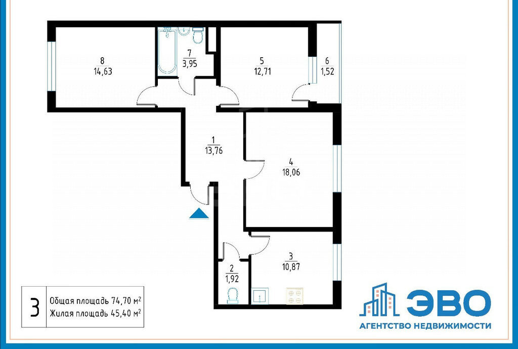 3-комнатная квартира: Санкт-Петербург, Ленинский проспект, 68 (74.7 м²)