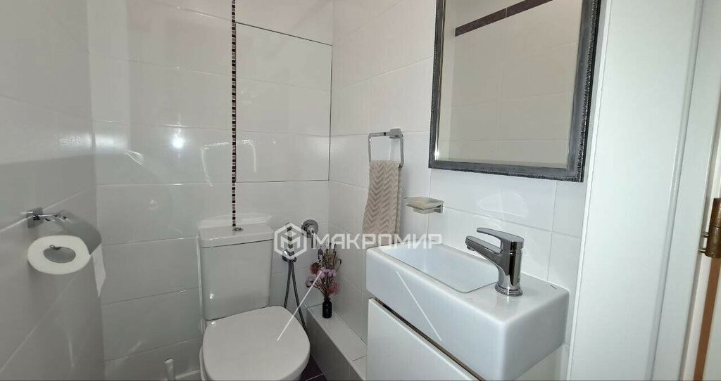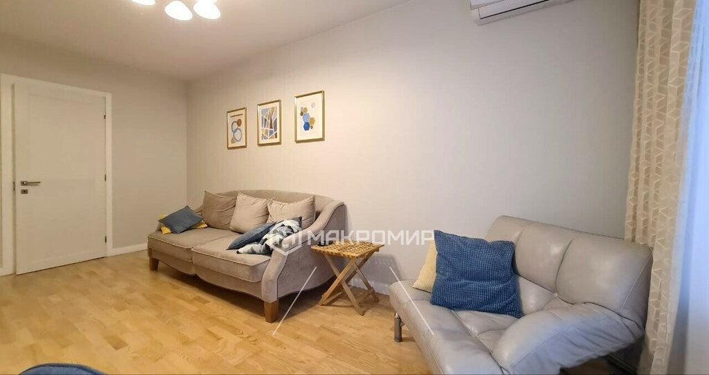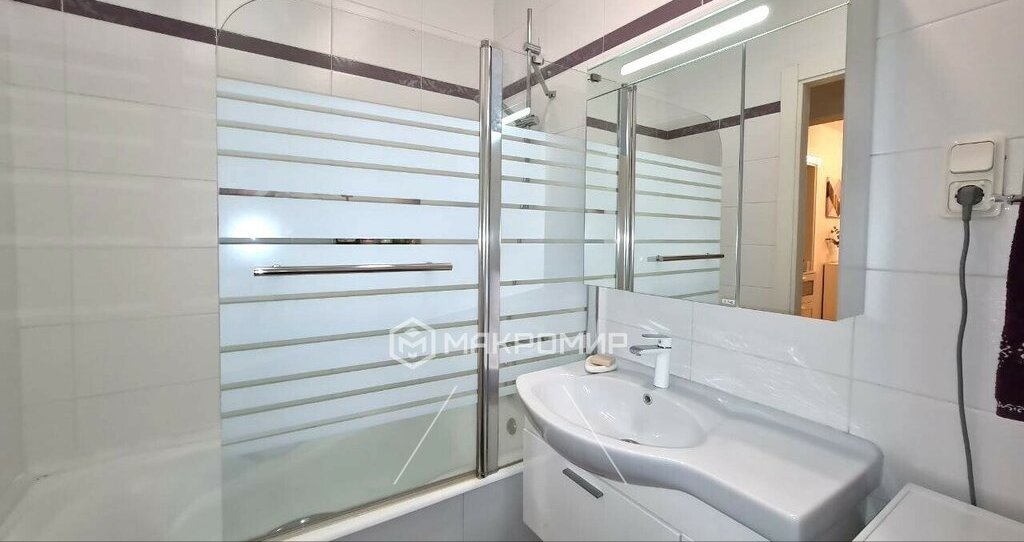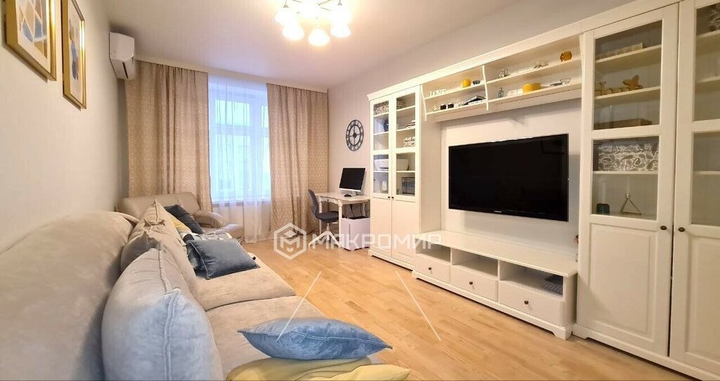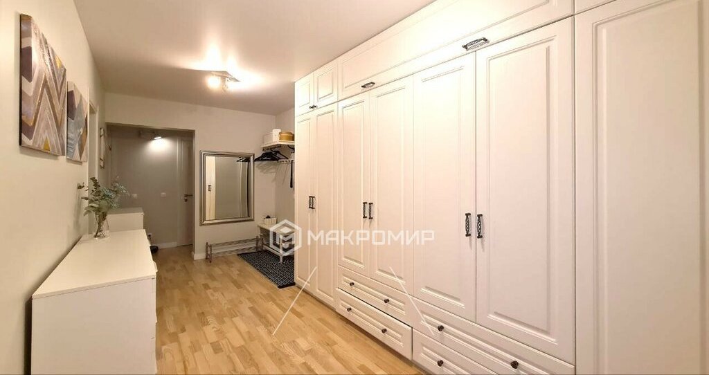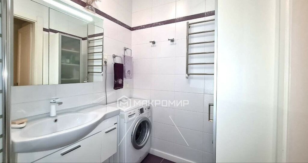 Низкие подоконники, благодаря чему в квартире много света. В спальне и гостиной установлены кондиционеры. С/у раздельный, в ванной комнате установлена стиральная машина, есть места для хранения, зеркало с подсветкой. Просторная прихожая, с огромным шкафом и комодом.