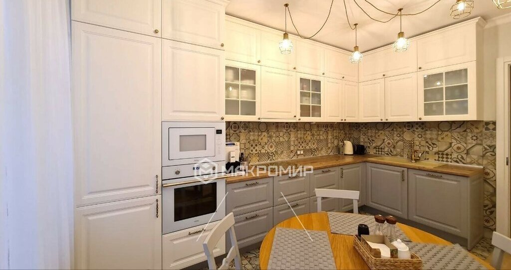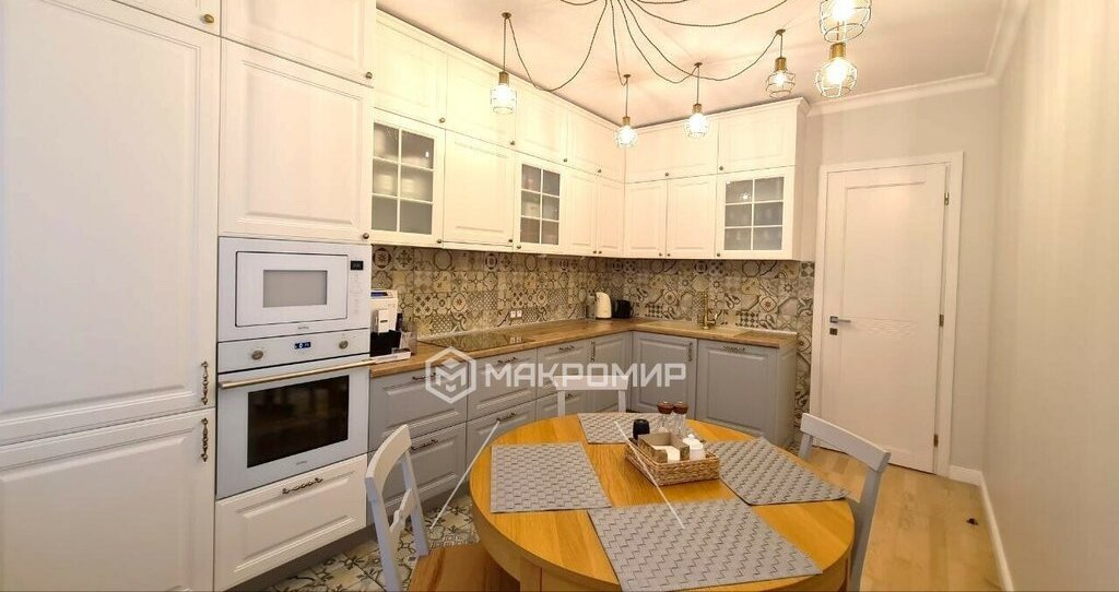 кухня - встроенная кухонная мебель, большой двухкамерный холодильник, посудомоечная машина, варочная поверхность, духовой шкаф, обеденный стол со стульями,