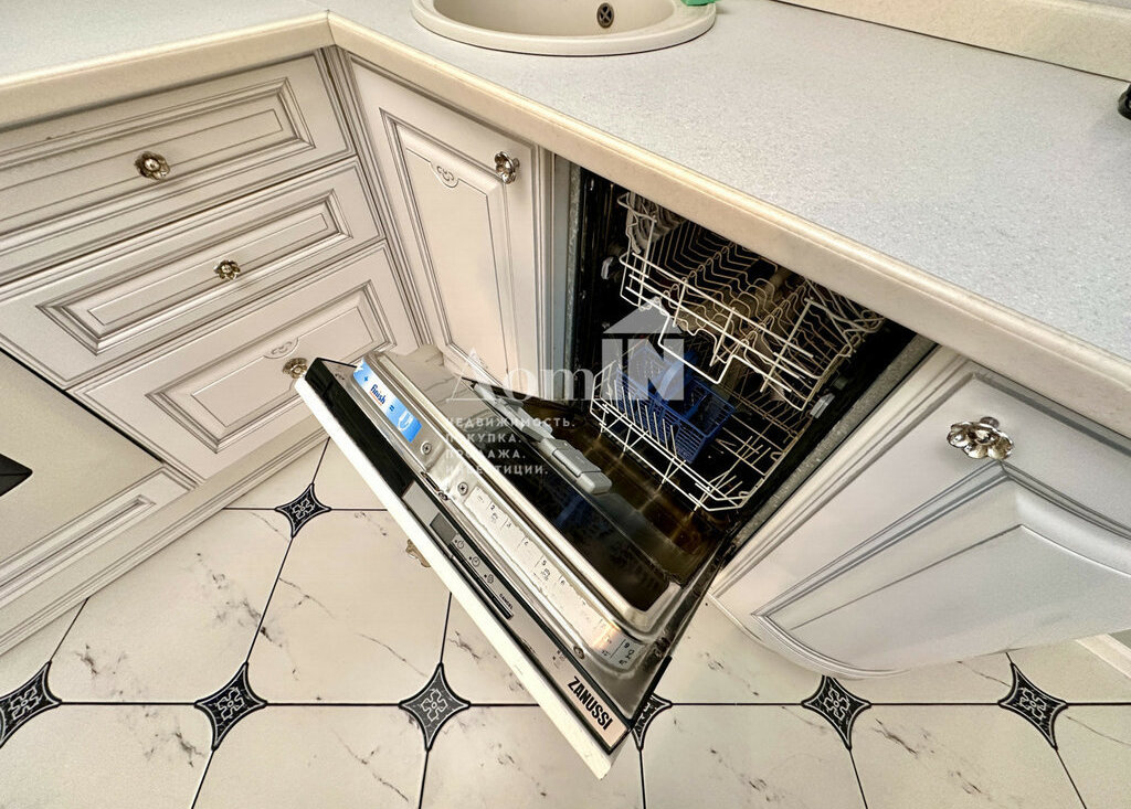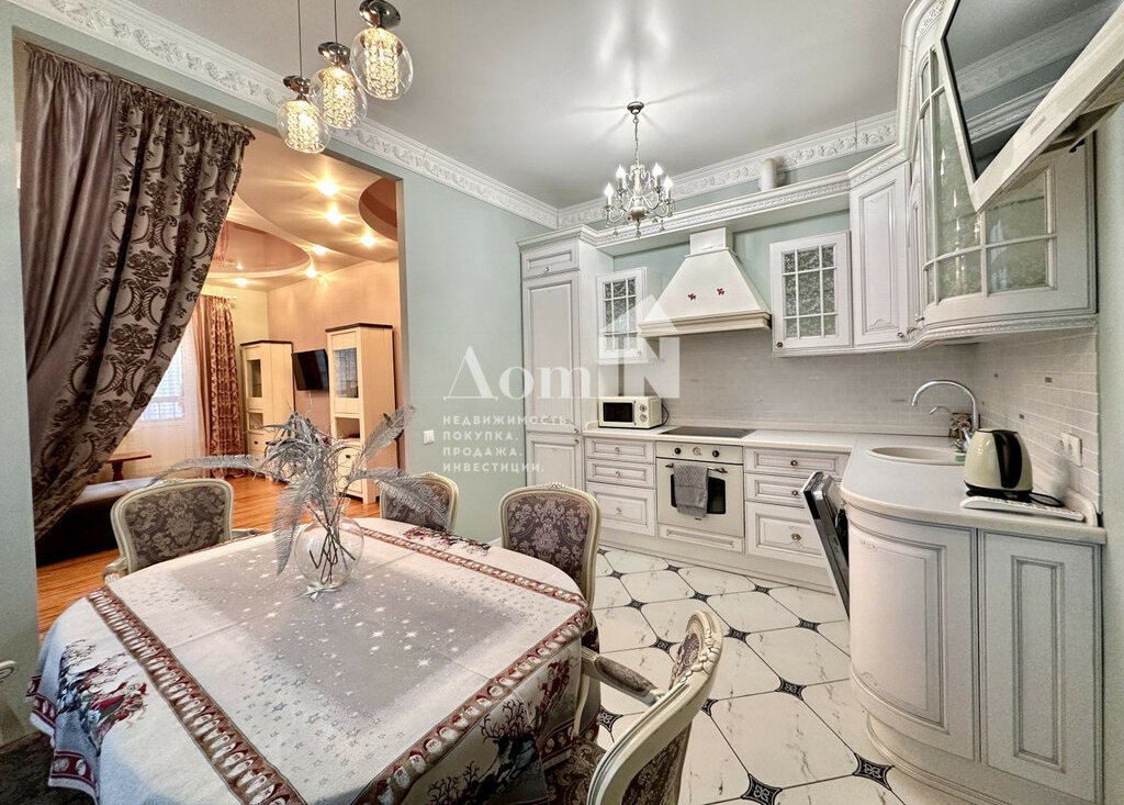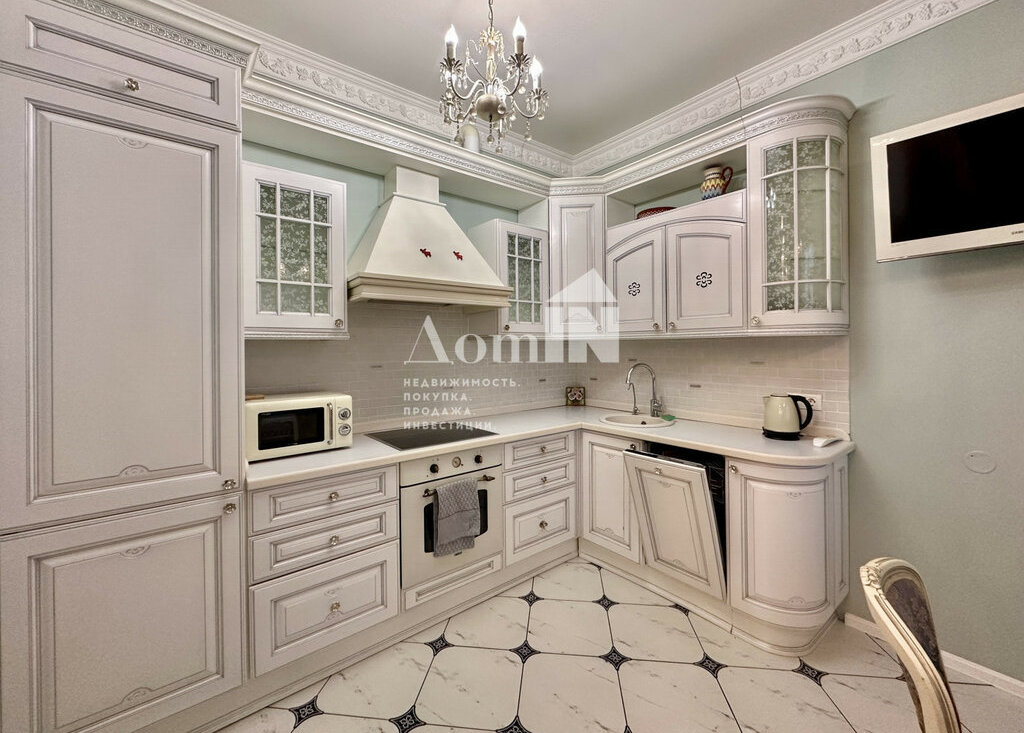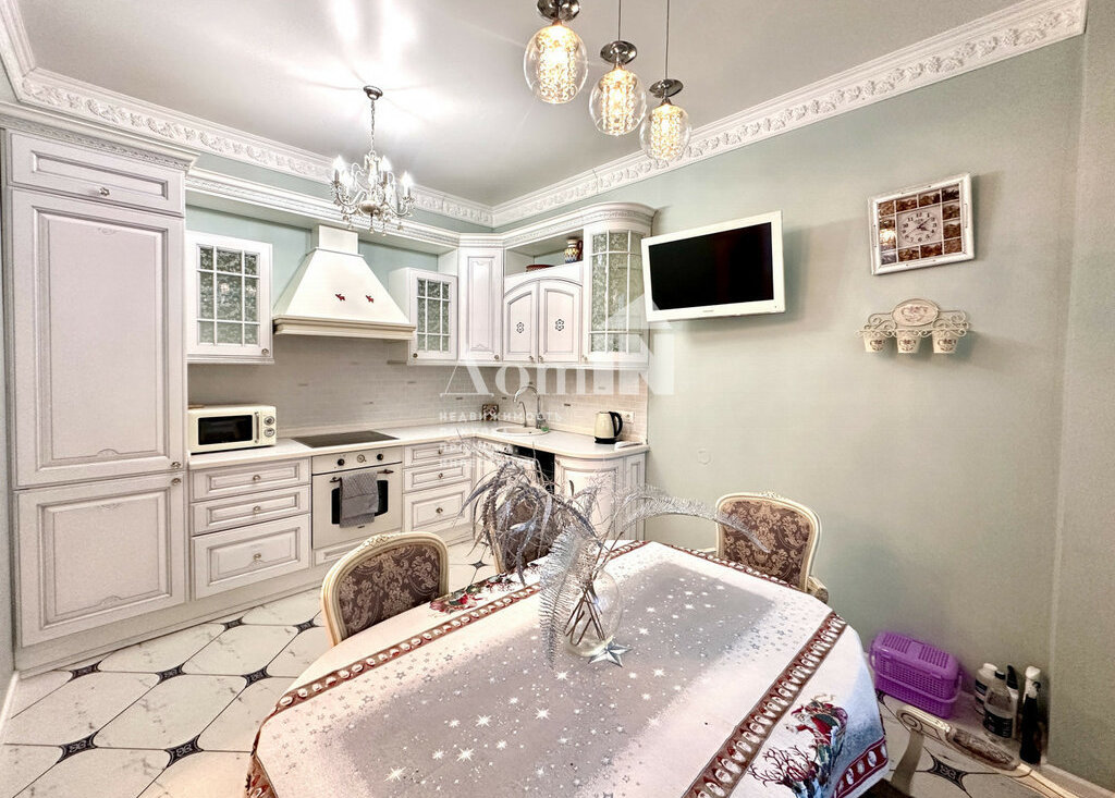 - Встроенная кухня с посудомойкой, плитой, духовкой, вытяжкой, микроволновкой, холодильником и большим обеденным столом;