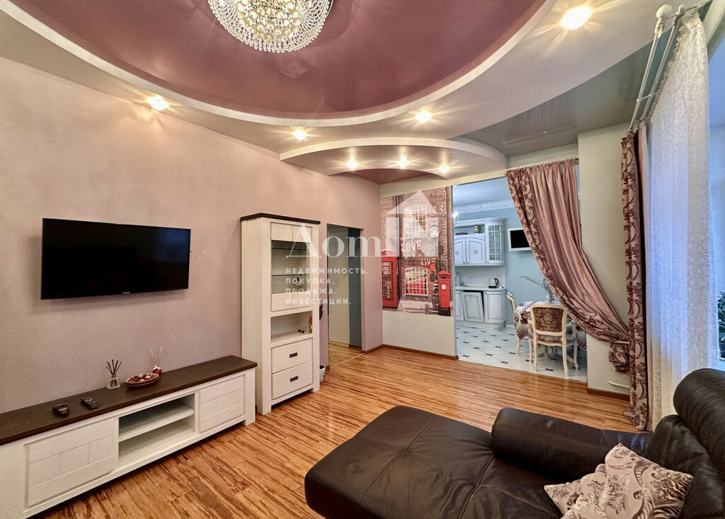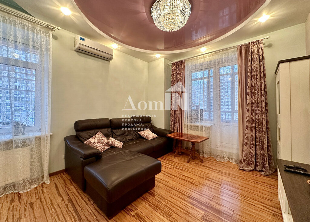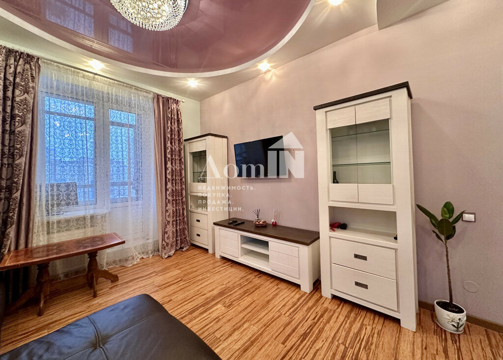 - Гостиная с раскладным диваном, кондиционером, TV, системой хранения, журнальным столиком;