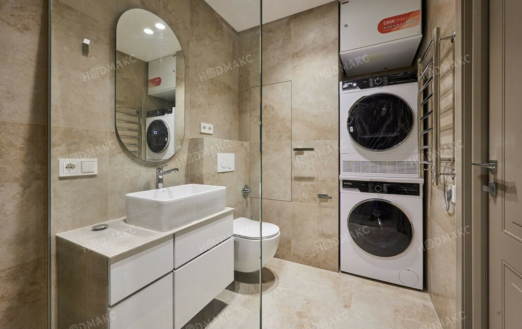 • Современная бытовая техника: стиральная и посудомоечная машины, духовой шкаф, варочная панель, холодильник и телевизор.