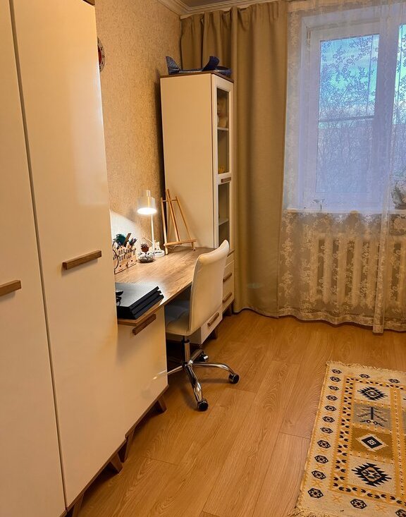 63 кв.м, этаж 6/9, окна выходят на 2 стороны. 1 комната раздельная (10 кв.м) 2 смежные (12 и 17 кв.м).