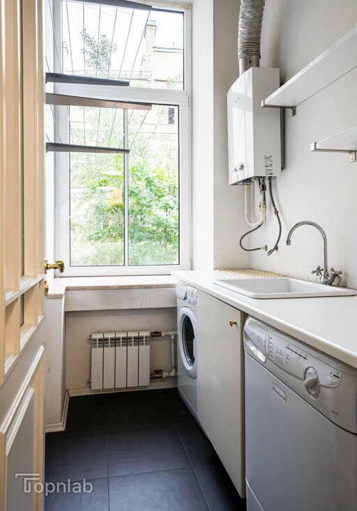Квартира уникальна высокими потолками, которые визуально расширяют пространство, наполняя его воздухом и светом.