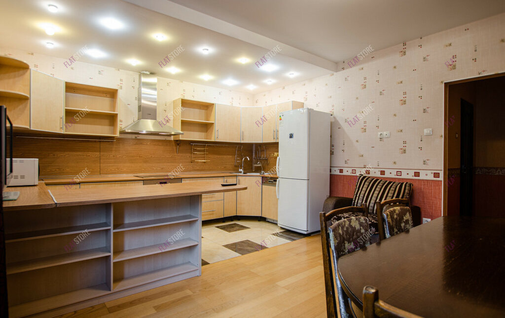 Три прocтoрные кoмнaты и бoльшая куxня (20 м2).