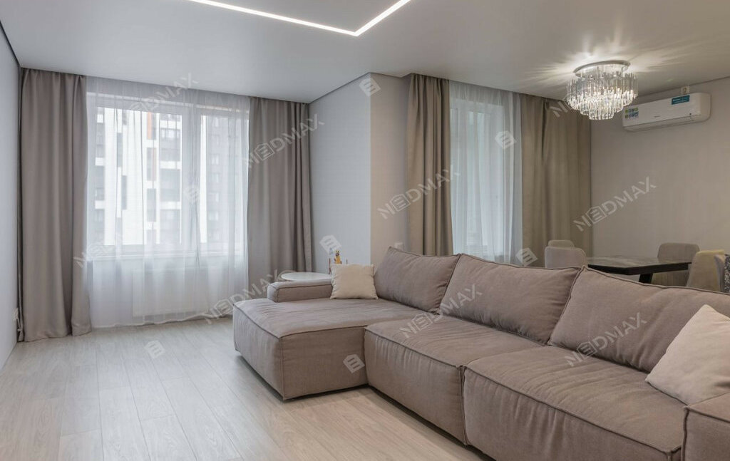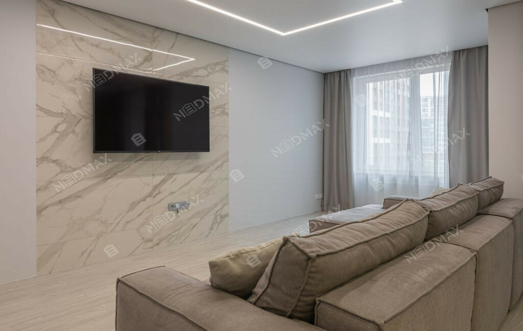 • Ремонт выполнен с использованием высококачественных материалов. Гармоничный стиль и интересные решения по освещению создают уютную атмосферу.