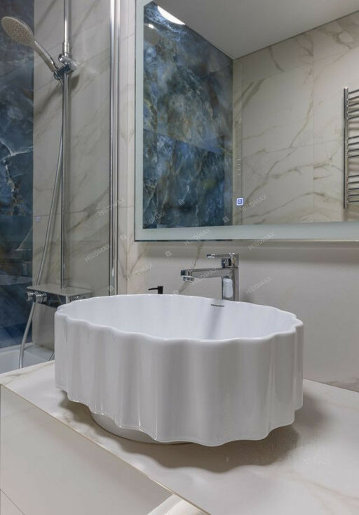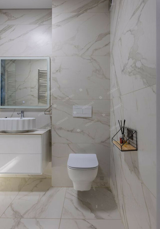 Ванная комната: Каменная ванна и сантехника от известных брендов создают элегантную атмосферу. Установлен электросушитель для полотенец.