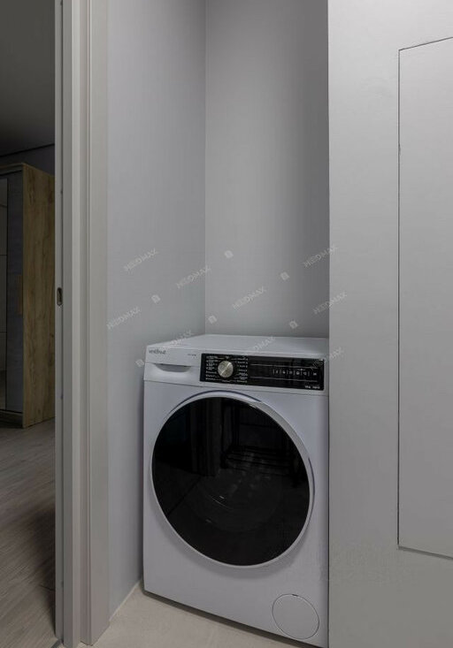 • Дополнительные удобства: Просторный коридор с тёплым полом, комната под гардеробную или для хранения вещей с установленной стирально-сушильной машиной Vestfrost.