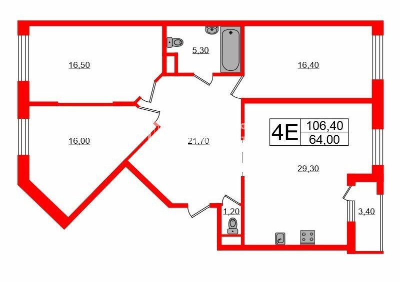 3-комнатная квартира: Санкт-Петербург, Парфёновская улица, 9к1 (106.4 м²)