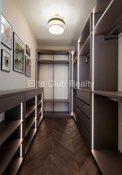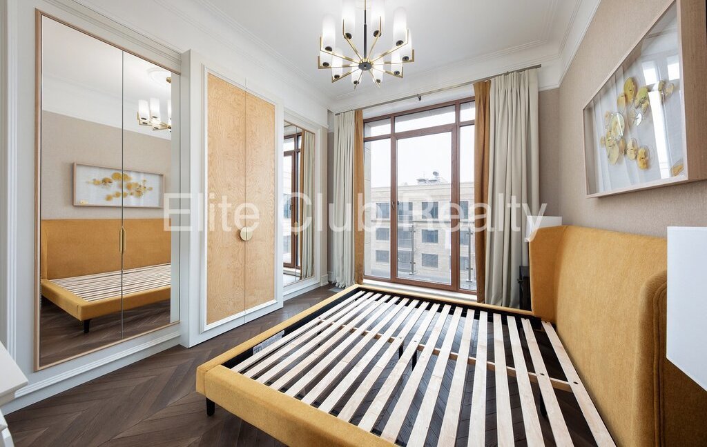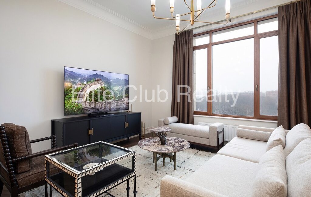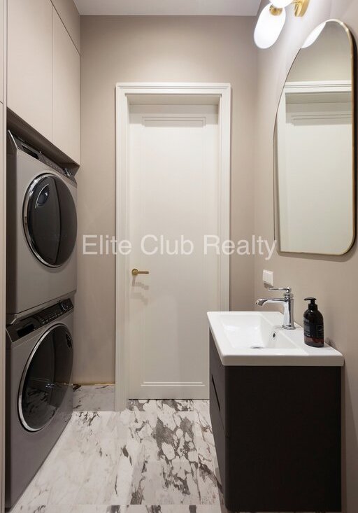 Пространство квартиры разделено на несколько зон: лаундж зона у панорамного окна с боковым видом на Малую Невку, уютная гостиная, грамотно продуманная кухня-столовая, тихая мастер-спальня с гардеробной и своим санузлом, а также две спальни, санузел с душевой и гостевой санузел-прачечная.