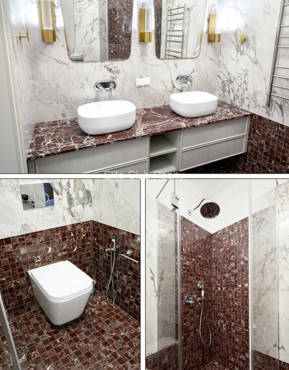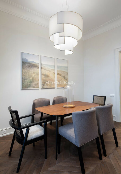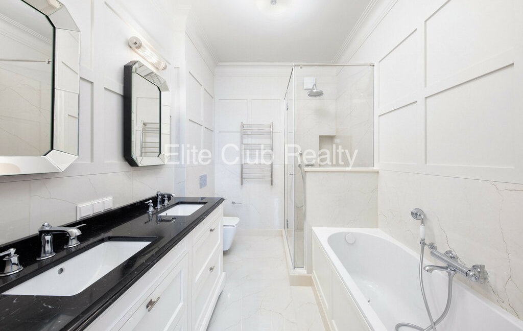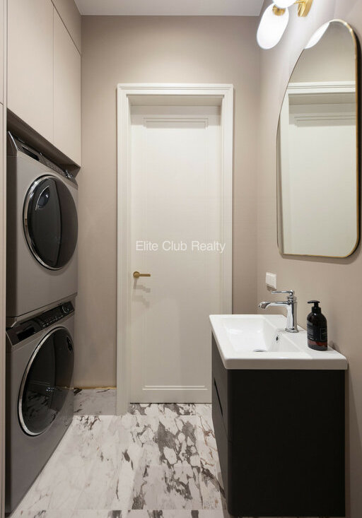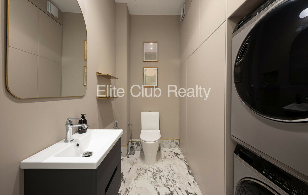 Пространство квартиры разделено на несколько зон: лаундж зона у панорамного окна с боковым видом на Малую Невку, уютная гостиная, грамотно продуманная кухня-столовая, тихая мастер-спальня с гардеробной и своим санузлом, а также две спальни, санузел с душевой и гостевой санузел-прачечная.