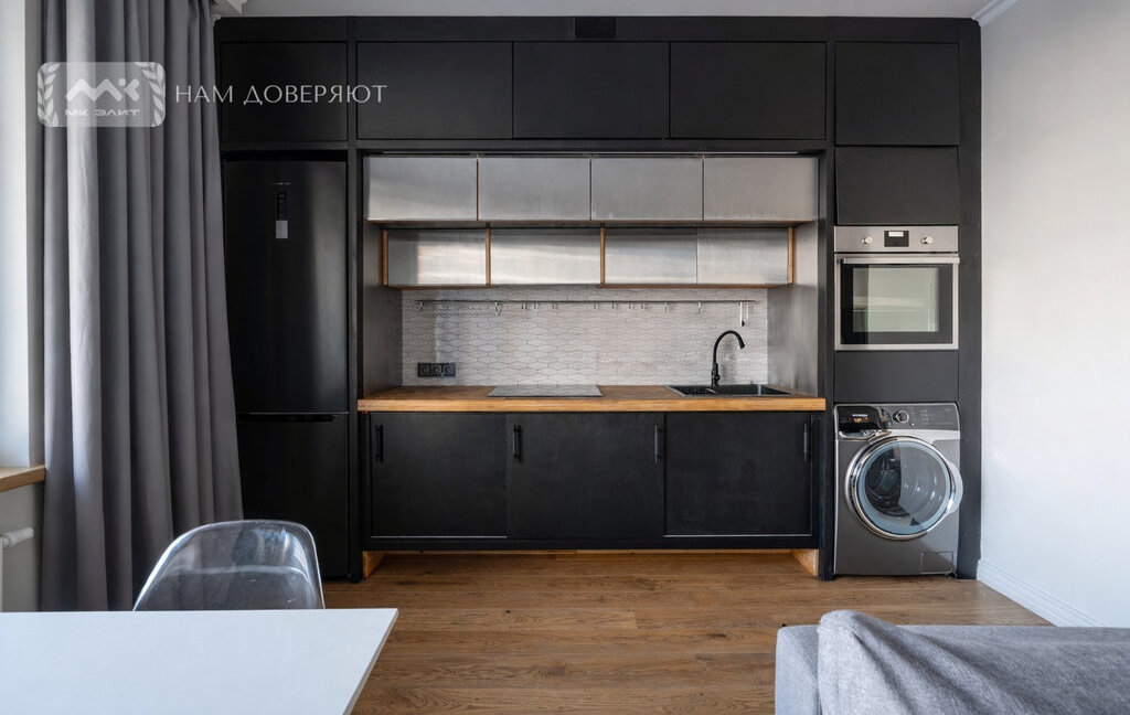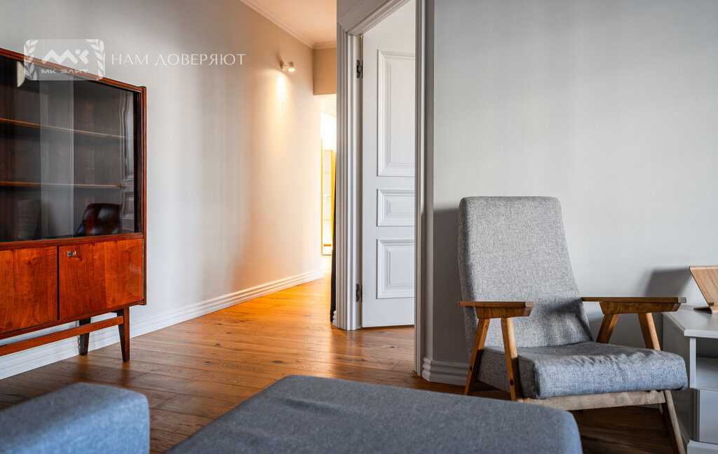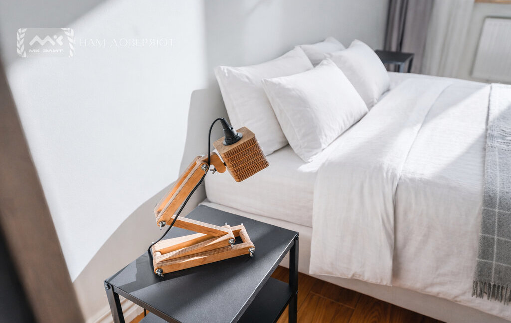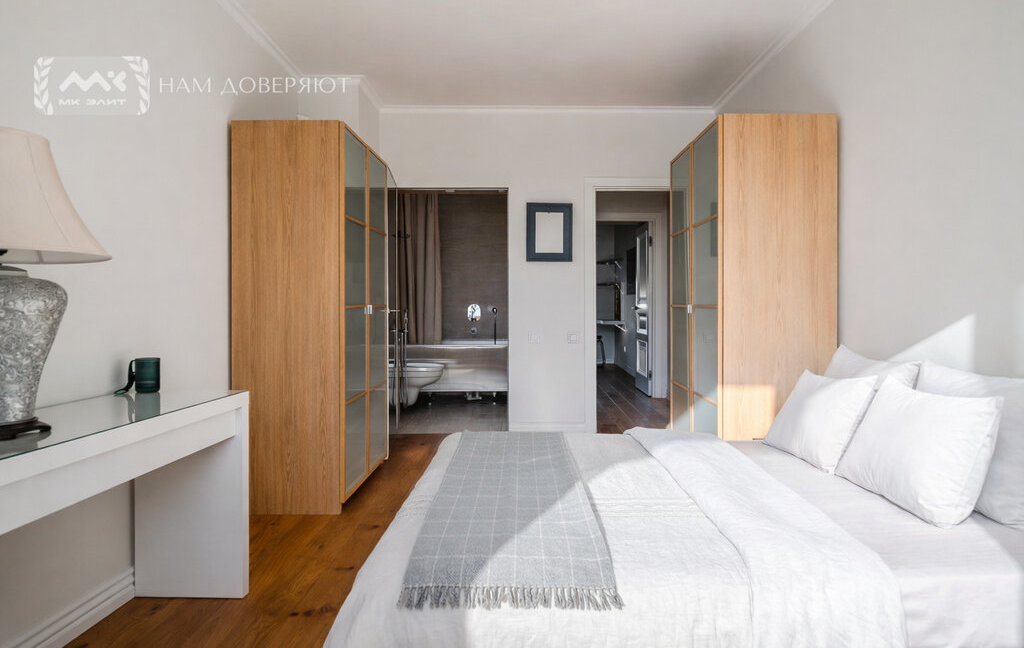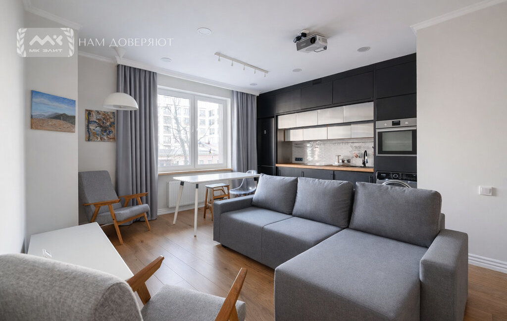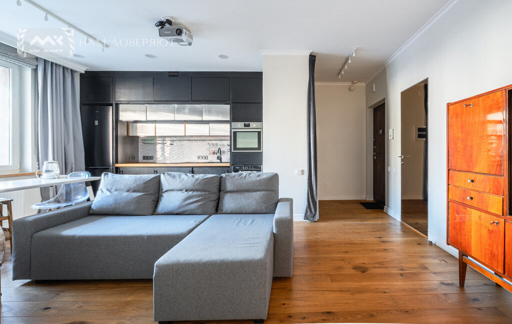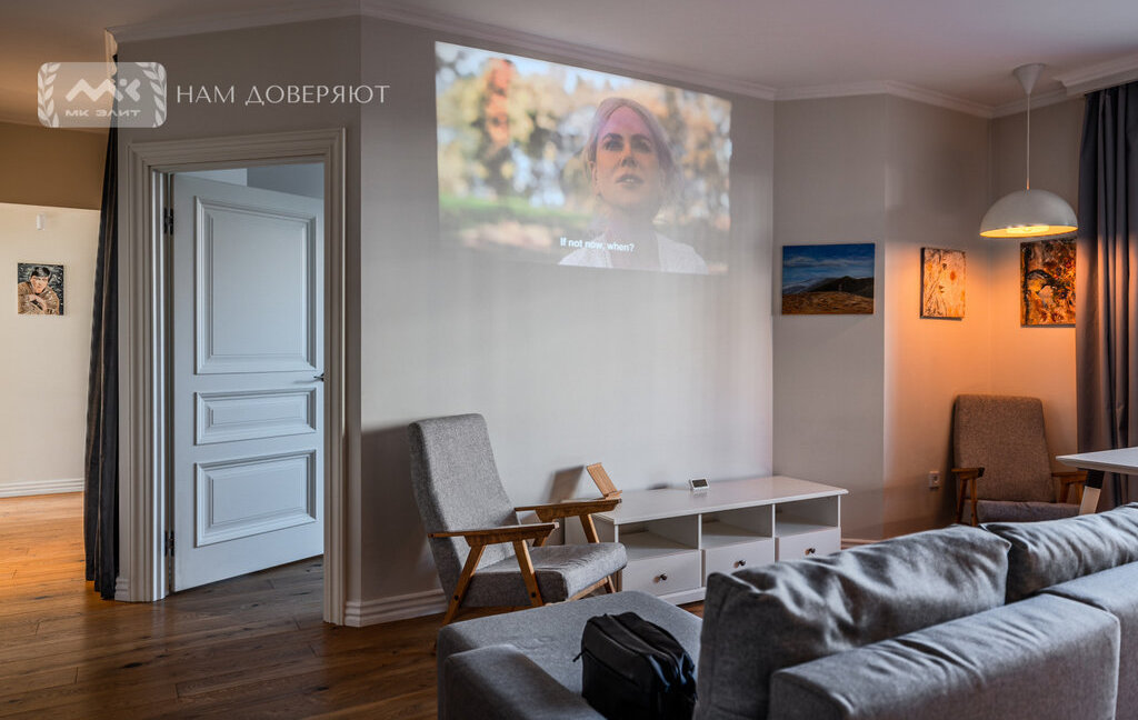 Планировка двухсторонняя, включает:три изолированных комнатыкухню-гостиную 30 м2 с проекторомдва санузла (гостевой и в мастер-спальне)места для хранения и техническую зону (глажка и сушка белья