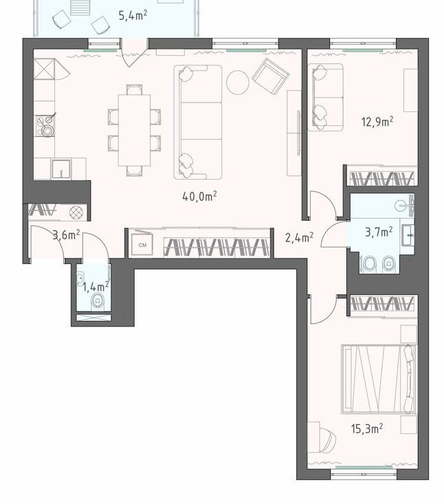 3-комнатная квартира: Санкт-Петербург, Воскресенская набережная, 4 (110.3 м²)