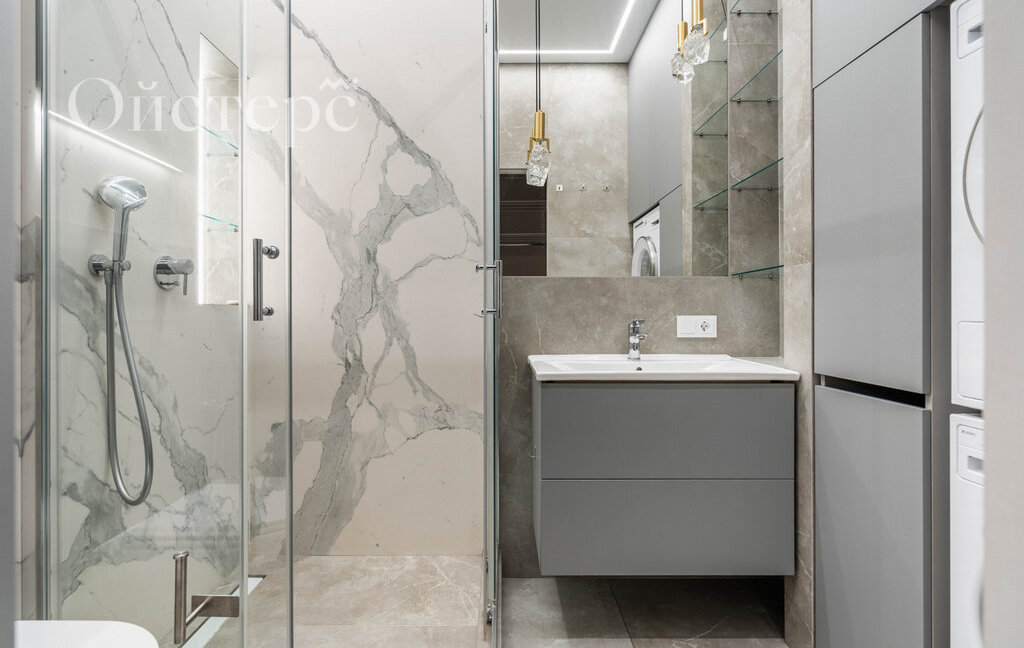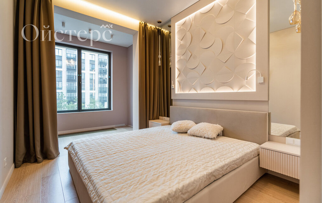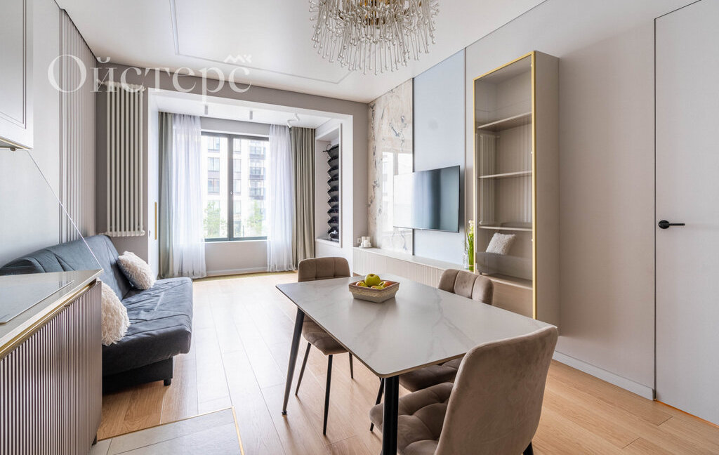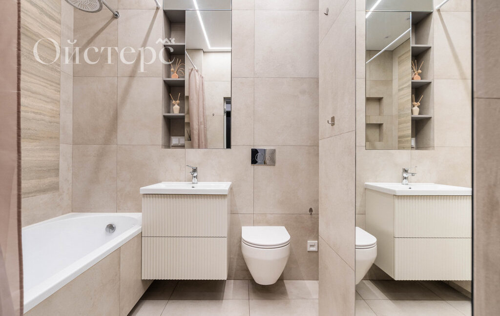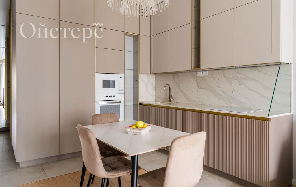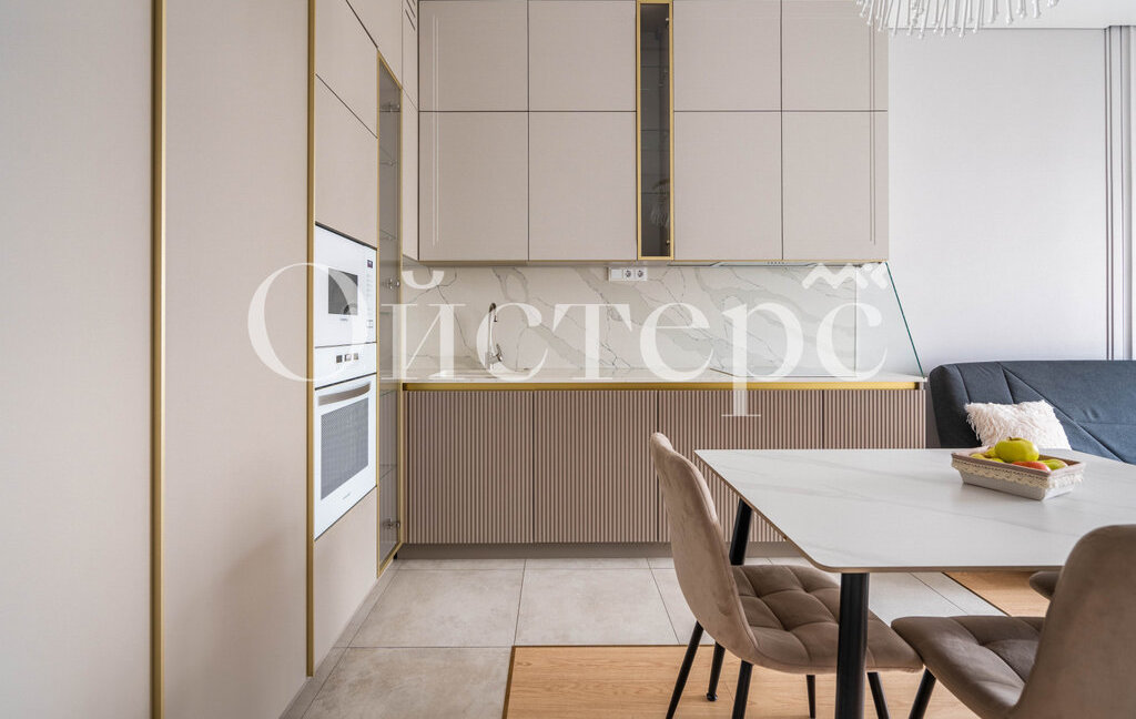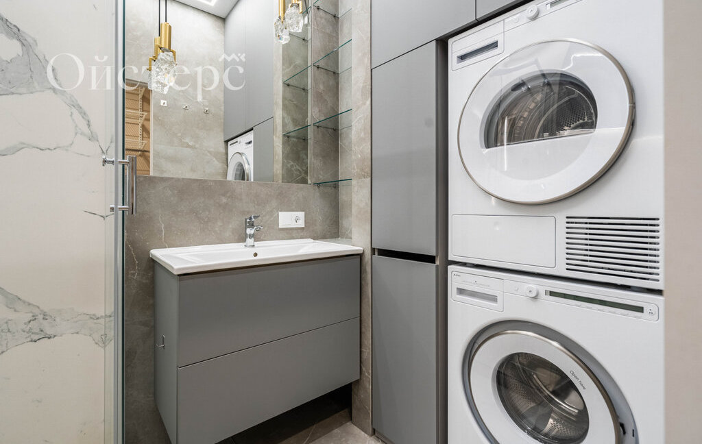 Квартира полностью оснащена мебелью и техникой, включая стиральную и сушильную машины. В отделке использовались дорогостоящие материалы - дерево, керамогранит, камень. Предусмотрено кондиционирование, теплые полы, множество сценариев освещения.