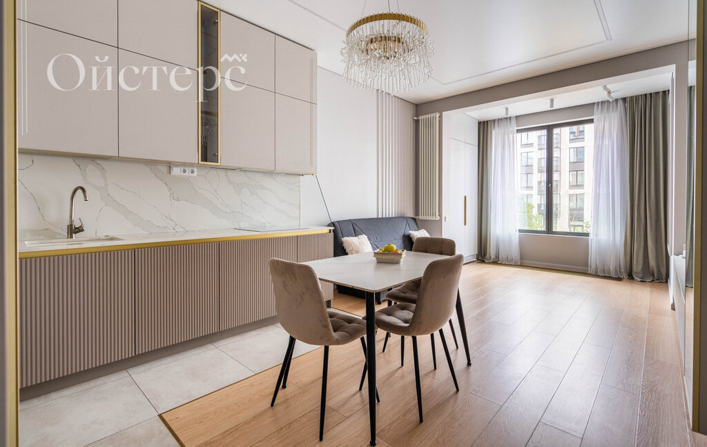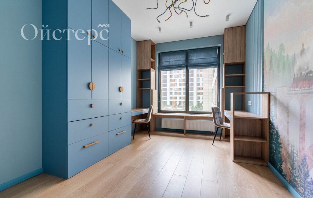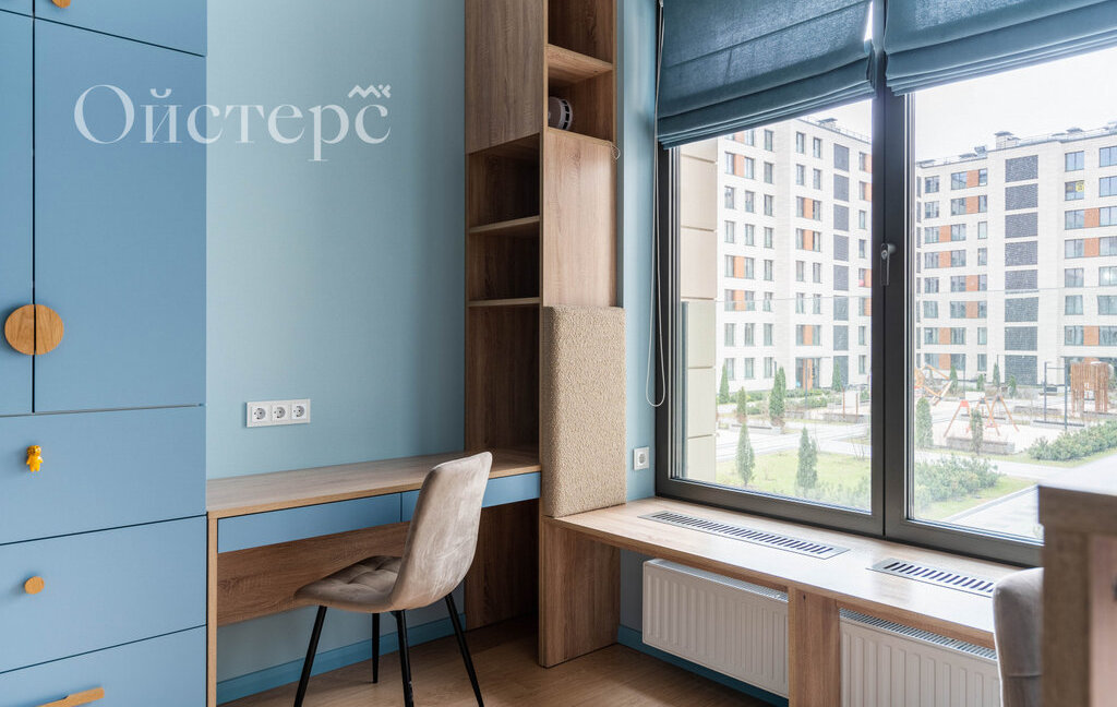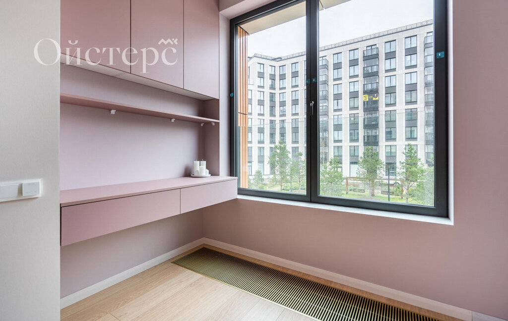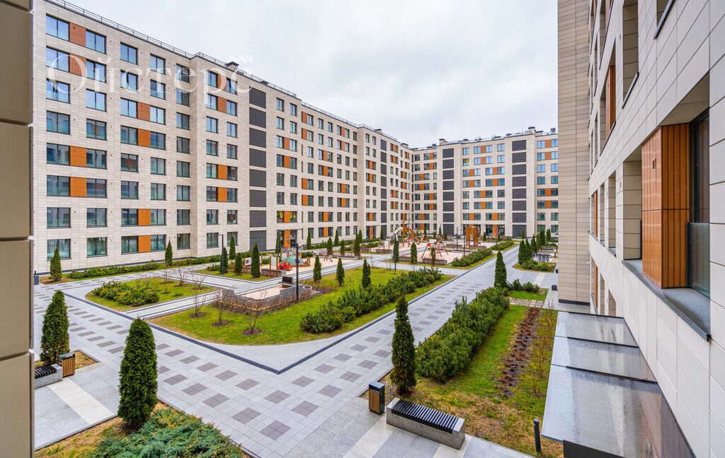 Квартира двусторонняя, кухня-гостиная и мастер-спальня обращены в красивый ландшафтный сквер. Детская смотрит во двор, что позволяет отпускать ребенка на прогулку и присматривать за ним из окна за чашечкой кофе.