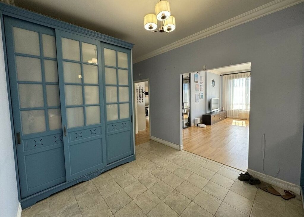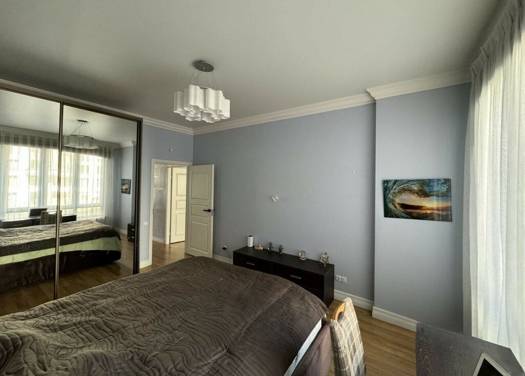 Планировка продумана до мелочей и построена по принципу разделения на дневную и ночную зоны. Пространство кухни-гостиной объединено, но при желании может изолироваться раздвижными дверями. В квартире предусмотрена вместительная гардеробная для хранения вещей. Санузлы раздельные, с установленным биде.