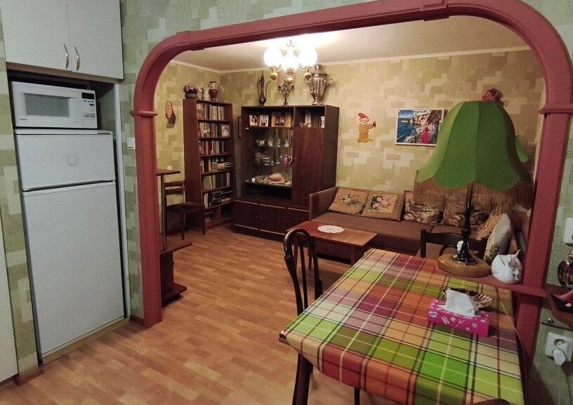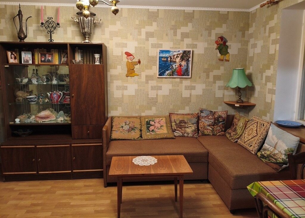 Планировка: 2 жилых комнаты и гостиная, объединенная с кухней.