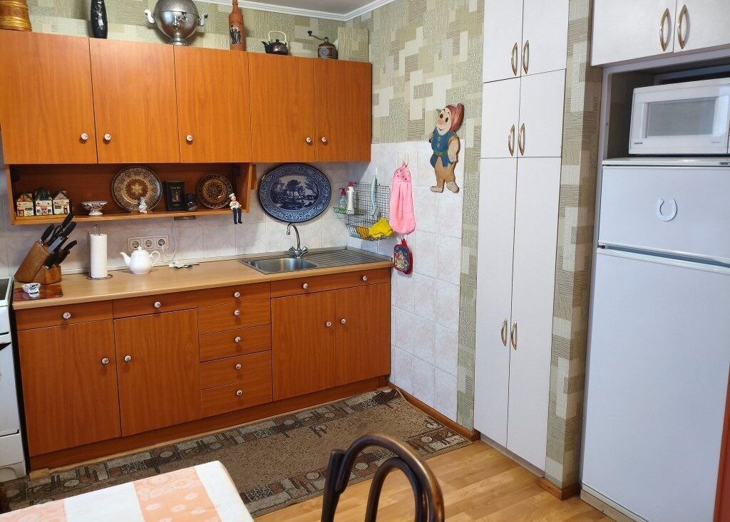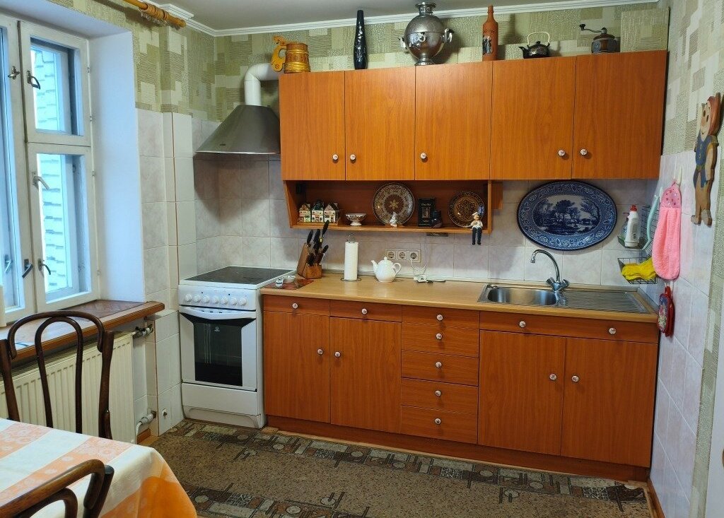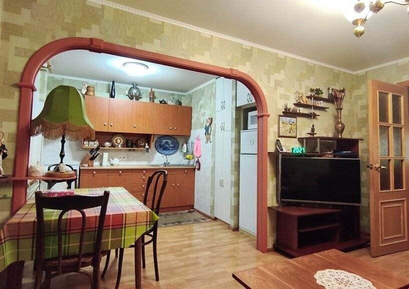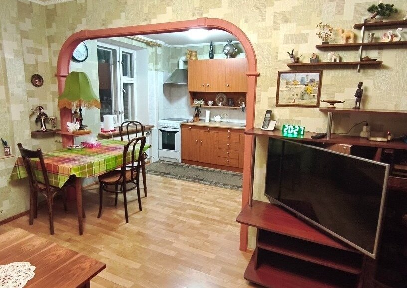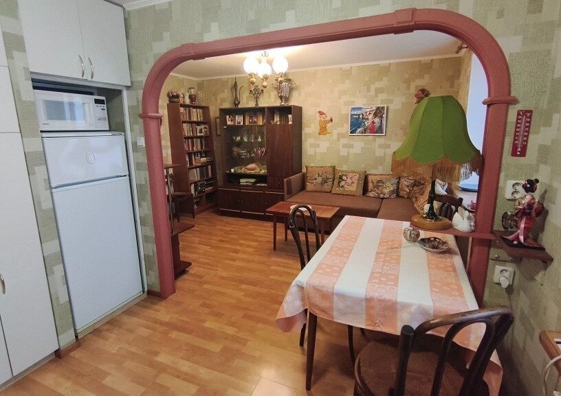 Планировка: 2 жилых комнаты и гостиная, объединенная с кухней.