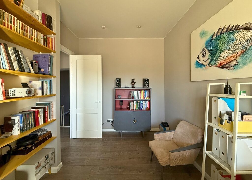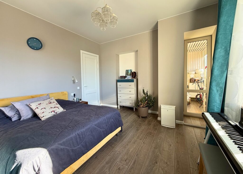 Ремонт завершен в 2022 году. Установлены высокие двери ProfilDoors 2.5 м, итальянская фурнитура Morelli с магнитными замками. Полностью оборудованный кабинет: угловой стол из массива выполнен на заказ точно по размеру стен, книжные полки из массива - до потолка. Санузел раздельный с инсталляцией Grohe, просторная ванная комната, 4.8 кв. м. В спальне установлена приточная вентиляция Airnanny с тремя фильтрами очистки и подогревом воздуха. Кухня сделана на фурнитуре Blum, фасады покрыты акриловым пластиком, горячая вода - центральная, без газовой колонки. Есть гардеробная комната со стеллажами до потолка по двум стенам.
