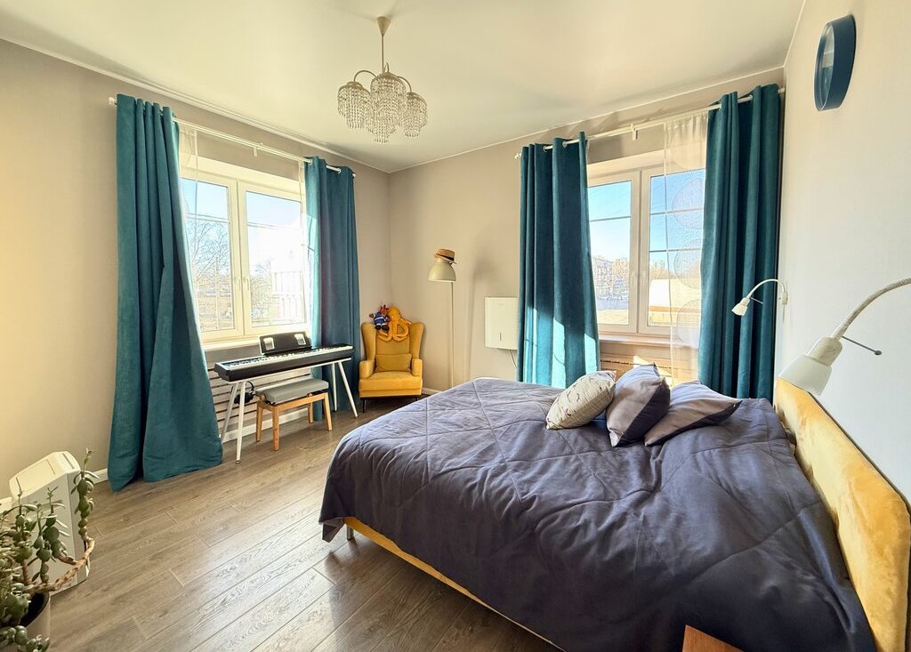 Квартира расположена в доме-объекте культурного наследия, в добротной кирпичной сталинке с толщиной стен до 1 метра. Планировка "распашонка", окна выходят на три стороны, в спальне два окна и лоджия. Хорошее освещение в разное время суток. За счет высоких 3 м потолков и хороших пропорций пространства квартира ощущается действительно объемной и светлой.