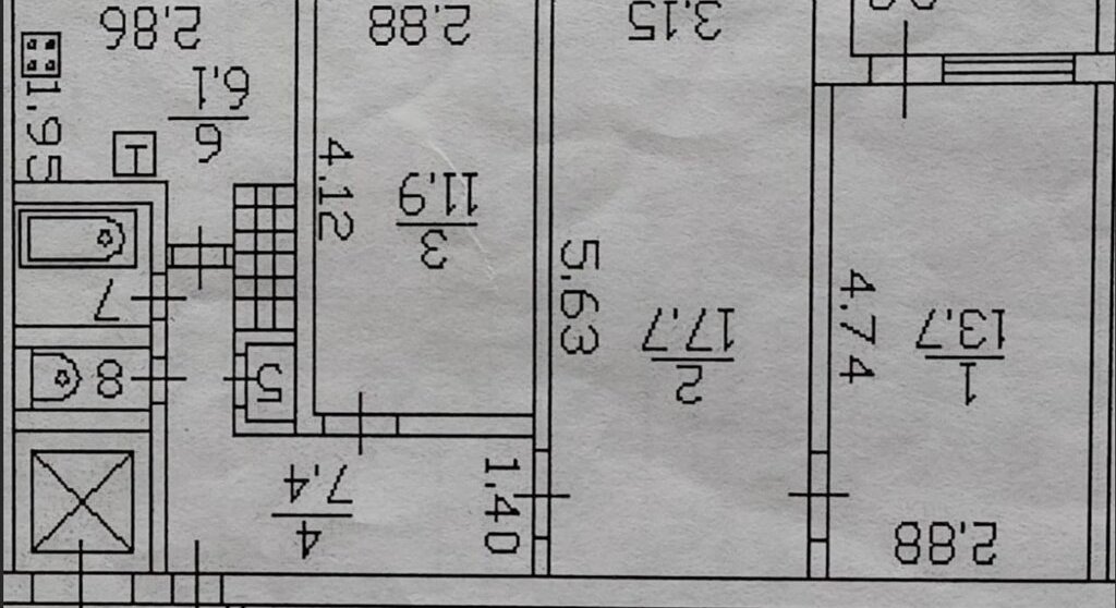 Комнаты: 2 смежные (17,7 и 13,7) и о дна изолированная (11,9 кв.м)