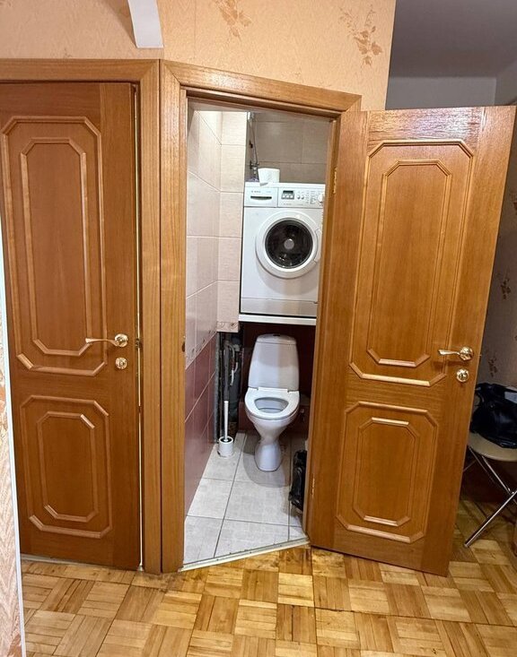 Дом в хорошем состоянии, оборудован пассажирским и грузовым лифтами, поэтому можно легко подниматься на нужный этаж. Вокруг дома развитая инфраструктура: рядом находятся школы, детские сады, клиники и магазины — всё необходимое для комфортной жизни.