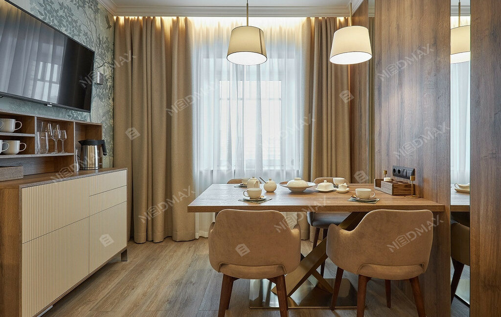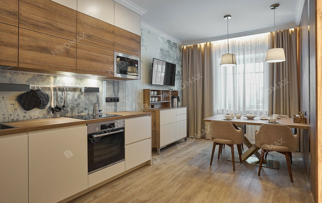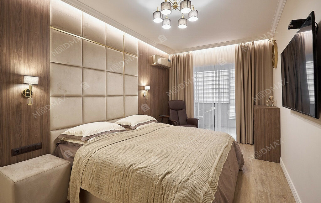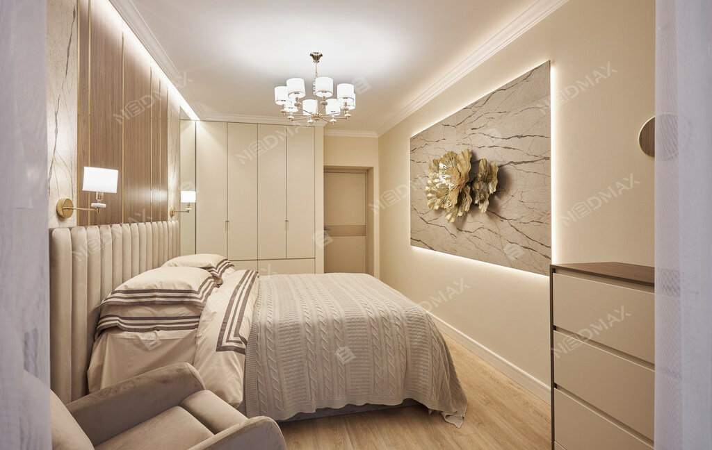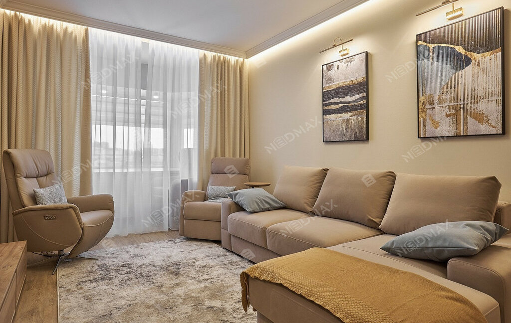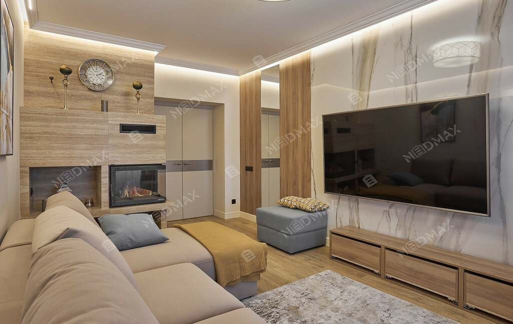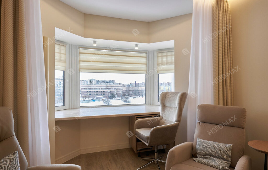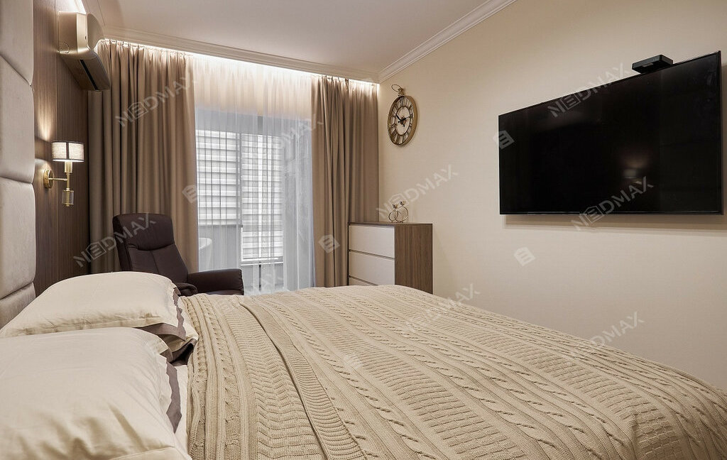 В квартире сделан высококачественный ремонт по авторскому дизайн-проекту. Планировка - две спальни с лоджиями, просторная гостиная с действующим камином, оборудованная кухня (посудомоечная машина, духовой шкаф, фильтры на воду), два санузла (ванна).