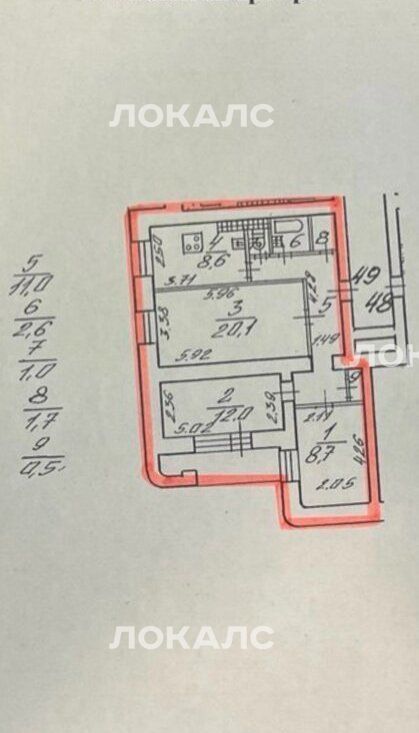 Квартира: Три изолированные комнаты и одна лоджия. Комнаты по 20 кв.м, 12 кв.м, 8.7 кв.м. Кухня 8.6 кв.м. Лоджия 5.4 кв.м. Перепланировок нет.